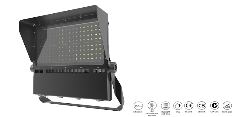 Vysoce výkonné LED venkovní reflektory ve třech variantách výkonu: 350W, 500W a 600W. Světelná účinnost 150 lm/W. Krytí IP66, nárazuodolnost IK08, vysoká odolnost proti korozi a vibracím. Úhel světla 10°, 15°, 24°, 36° a asymetrické optiky. Možnost stmívání 1-10V, DALI. Záruka 5 let.